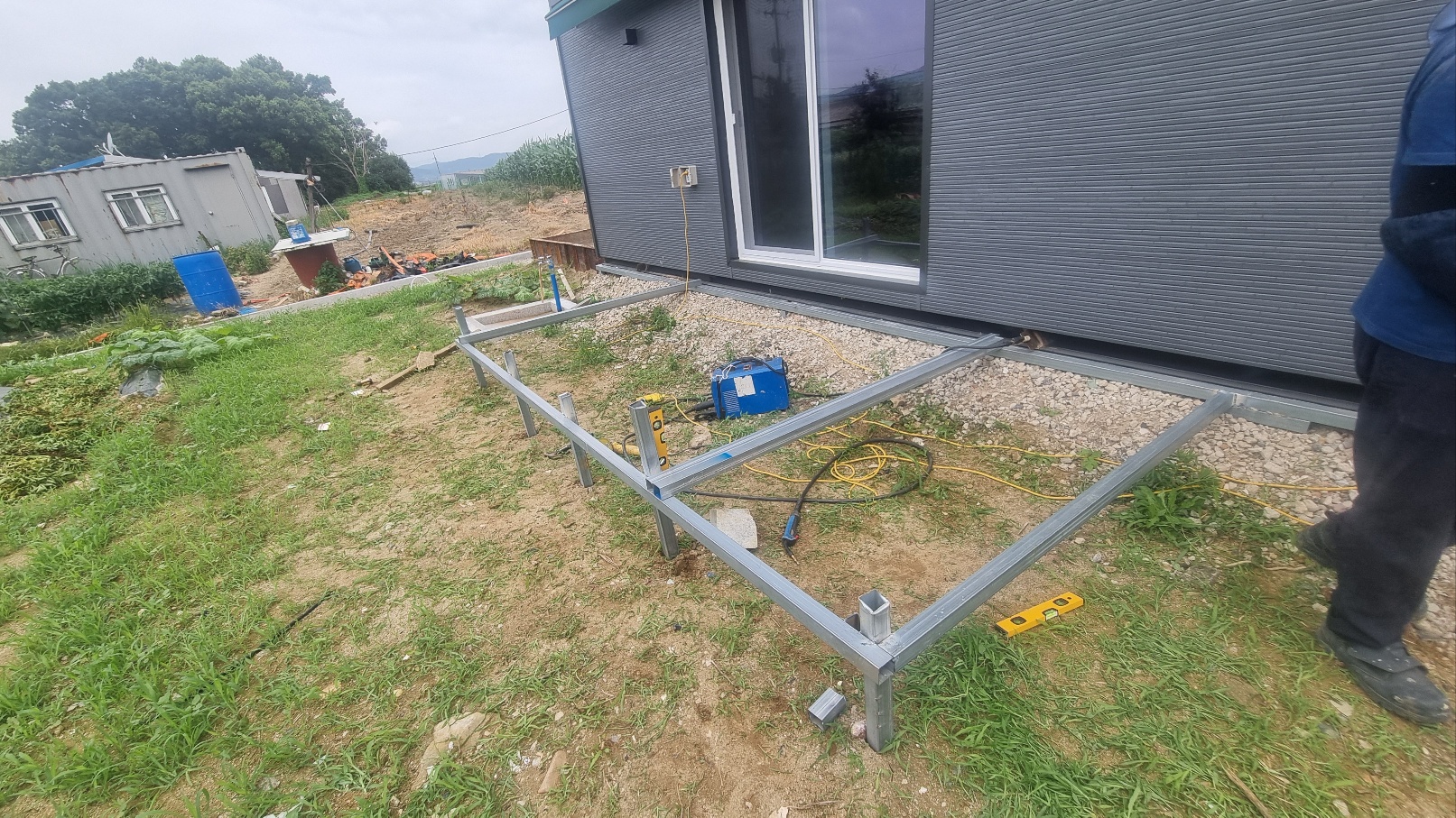 - 준비된 50x50 아연각관을 이용해 데크의 전체적인 틀을 용접합니다.