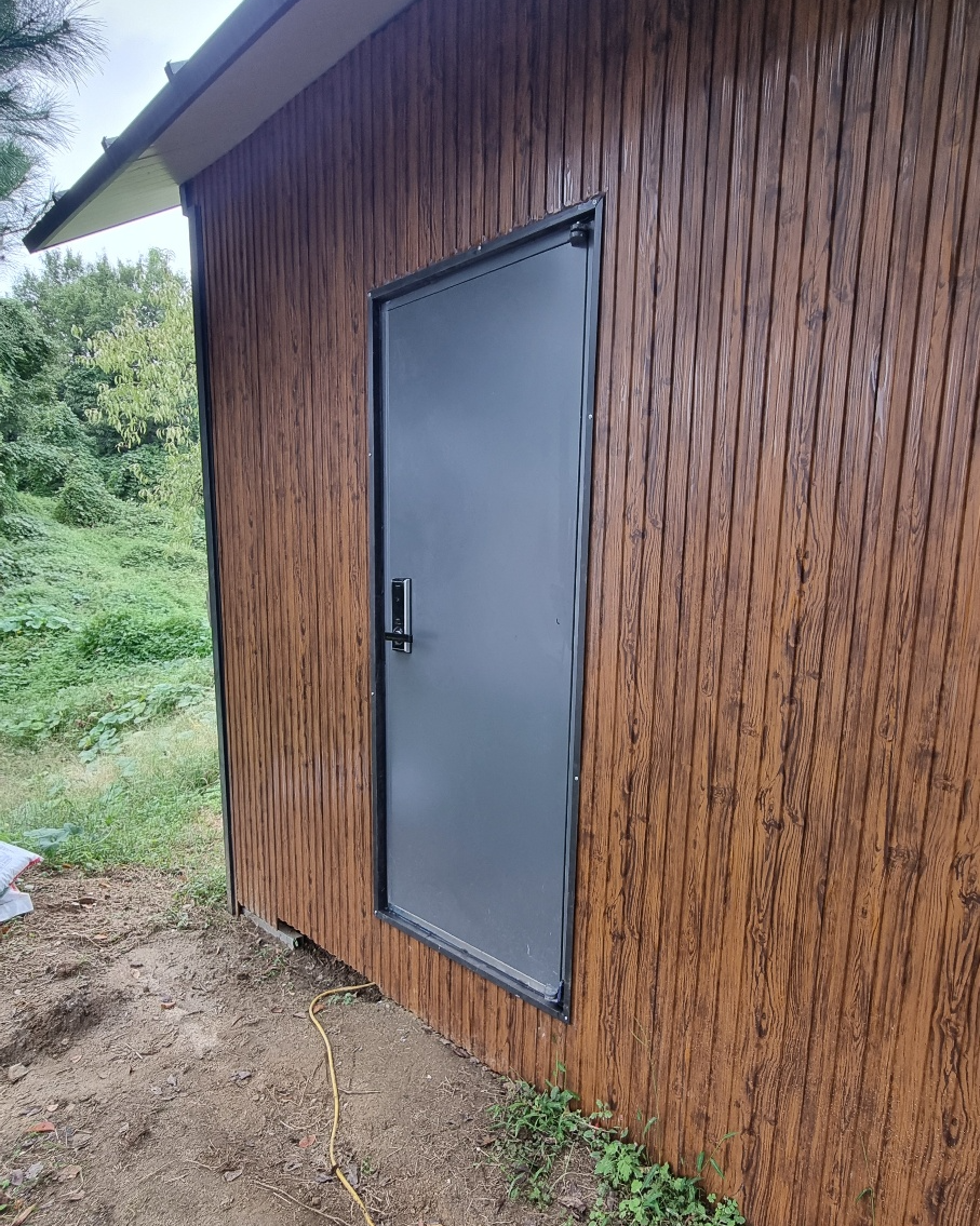 '스팬드릴 우드무늬 메탈사이딩'이라는 탁월한 자재 선택과, 안전을 최우선으로 고려한 방화문 및 도어록 시공을 통해, 이 컨테이너는 이제 단순한 창고가 아닌 고객님의 소중한 자산이자 든든한 쉼터가 되었습니다.